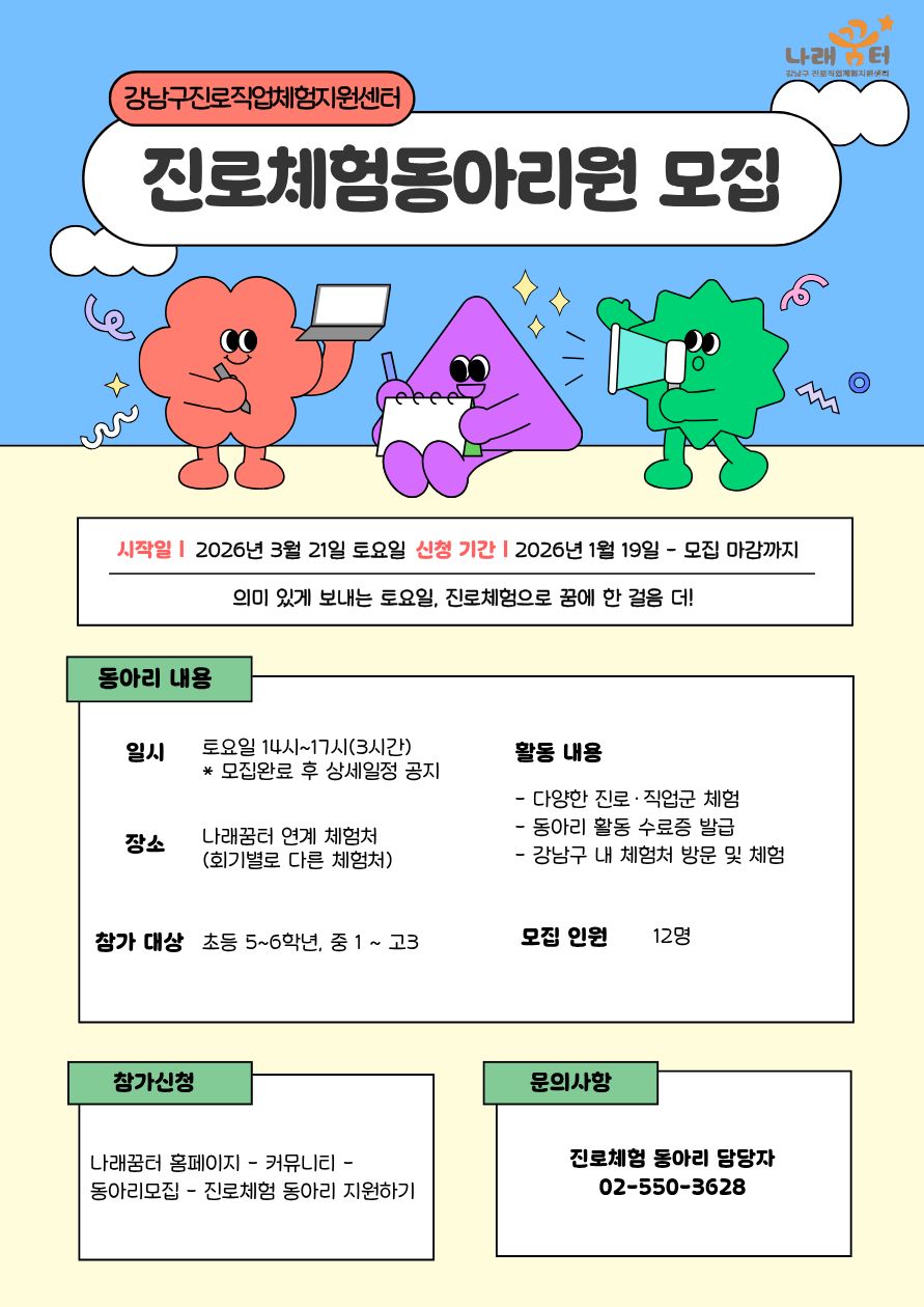 ⓒ역삼청소년센터·강남구진로직업체험지원센터 2024. All Rights Reserved. Hosting by DETASTE.